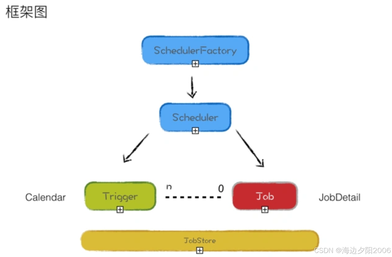 - 调度器(Scheduler):负责任务和触发器的注册、调度和执行