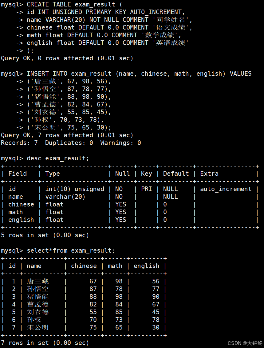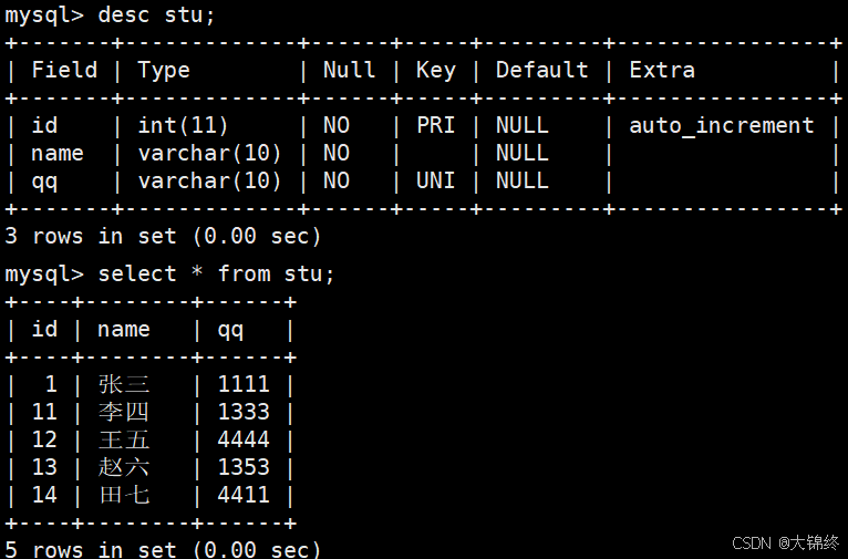 1.当创建表时想要和另一张表的结构一样时可以使用like,就不用重复再设置字段了,like不会复制数据内容