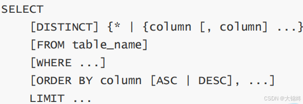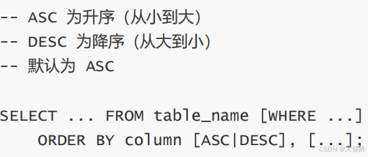 ORDER BY:对最终结果排序(可使用 SELECT 定义的别名,因执行在 SELECT 之后);