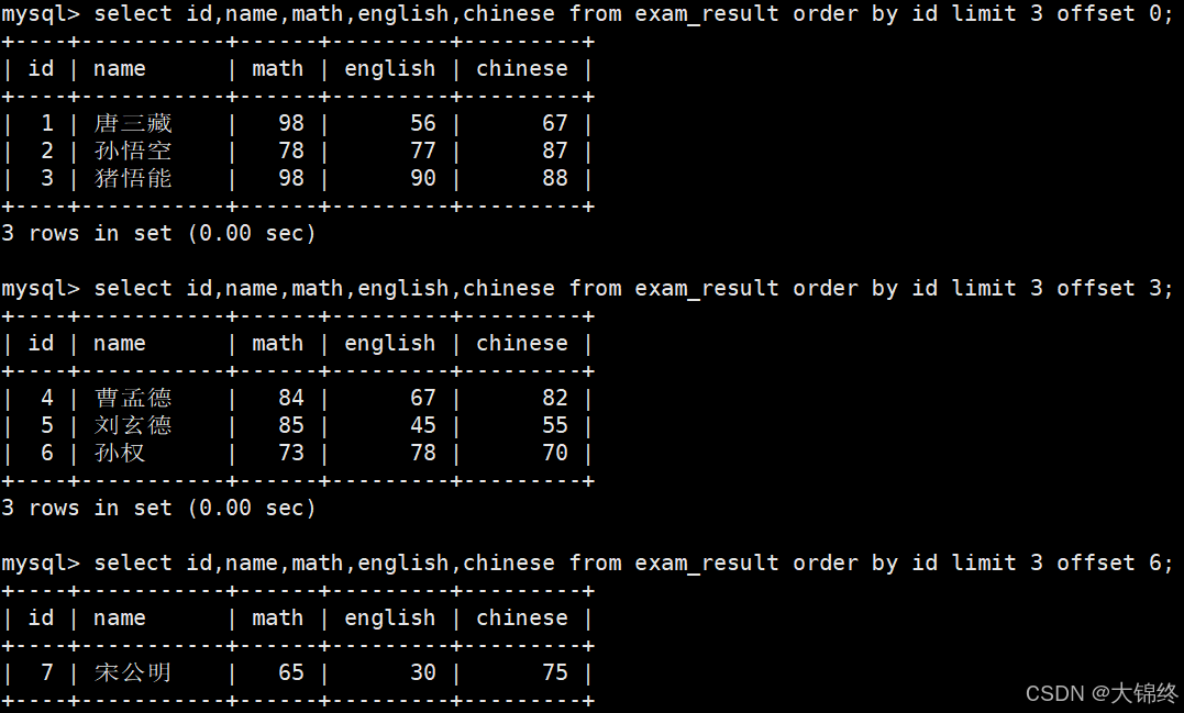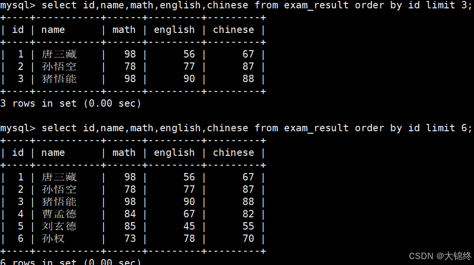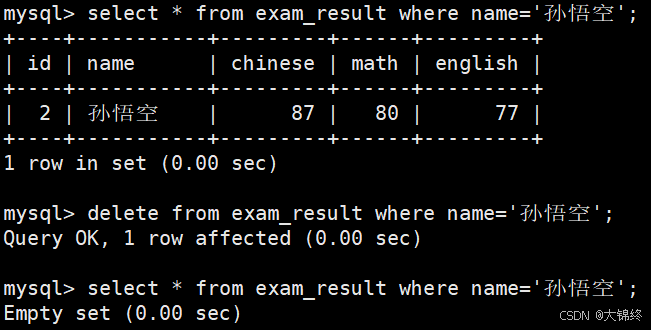 DELETE FROM table_name [WHERE ...] [ORDER BY ...] [LIMIT ...] - 删除孙悟空同学的考试成绩