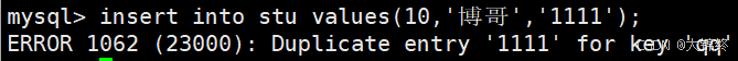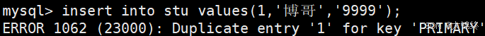 - 由于 主键 或者 唯一键 对应的值已经存在而导致插入失败: