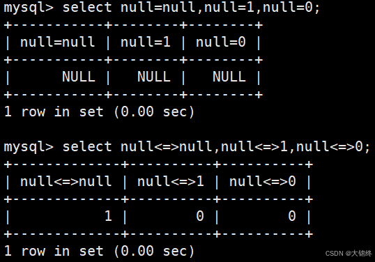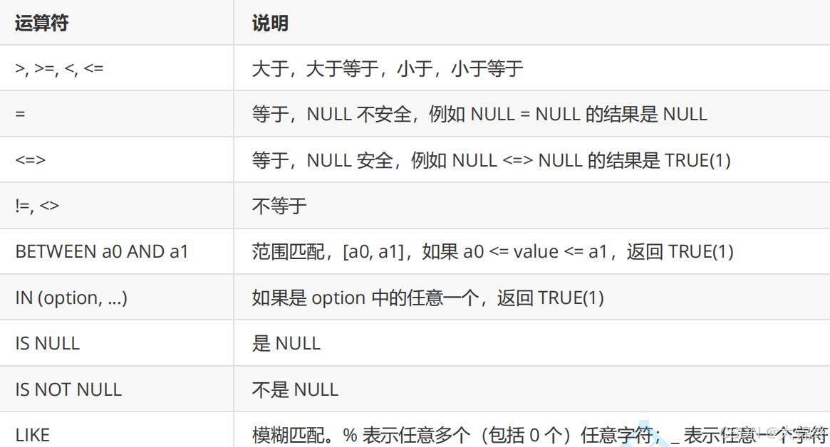 NULL 是 "未知",未知与任何事物(包括未知)都无法 "比较",只能 "判断是否为未知"(用 IS NULL)。<=> 解决 "两个值是否逻辑一致(含都未知)"。可以兼容null;IS NULL 解决 "某个值是否是未知"。