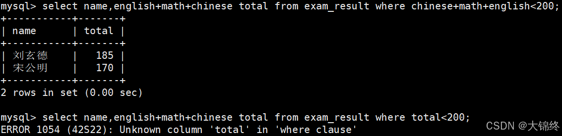 语法上:SQL 只允许 SELECT 定义列别名,WHERE 不支持别名定义;