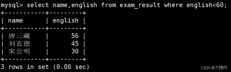 - 英语不及格的同学及英语成绩 ( < 60 )