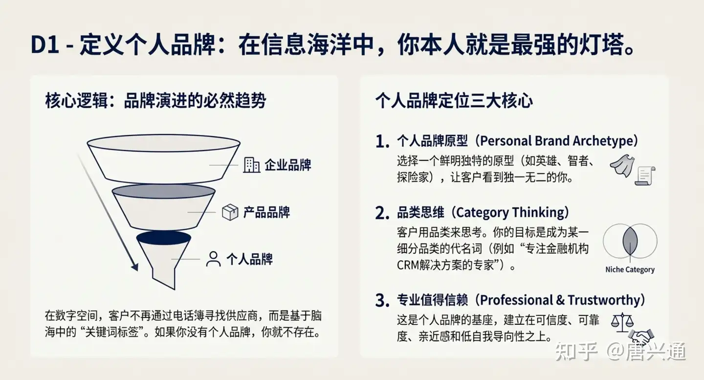 定义个人品牌就像是销售人员的大脑,它是销售力模型的核心和起点。个人品牌是销售人员在市场上的身份和角色,是他们与客户互动时的第一印象。通过定义个人品牌,销售人员能够明确自己的价值主张、专业领域和独特优势,从而在众多竞争者中脱颖而出。