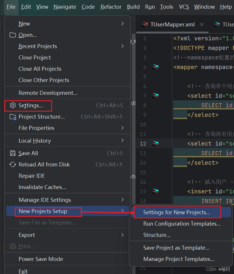 IDEA左上角File-->Settings...进入设置界面