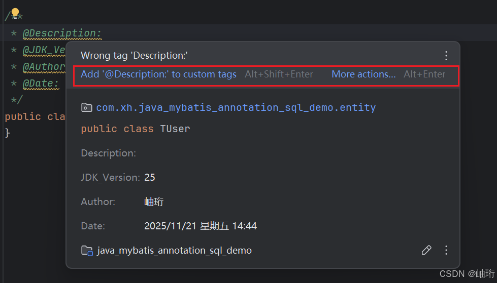 选择Add @Ddescription: to custom tags,或直接使用快捷键Alt+Shift+Enter