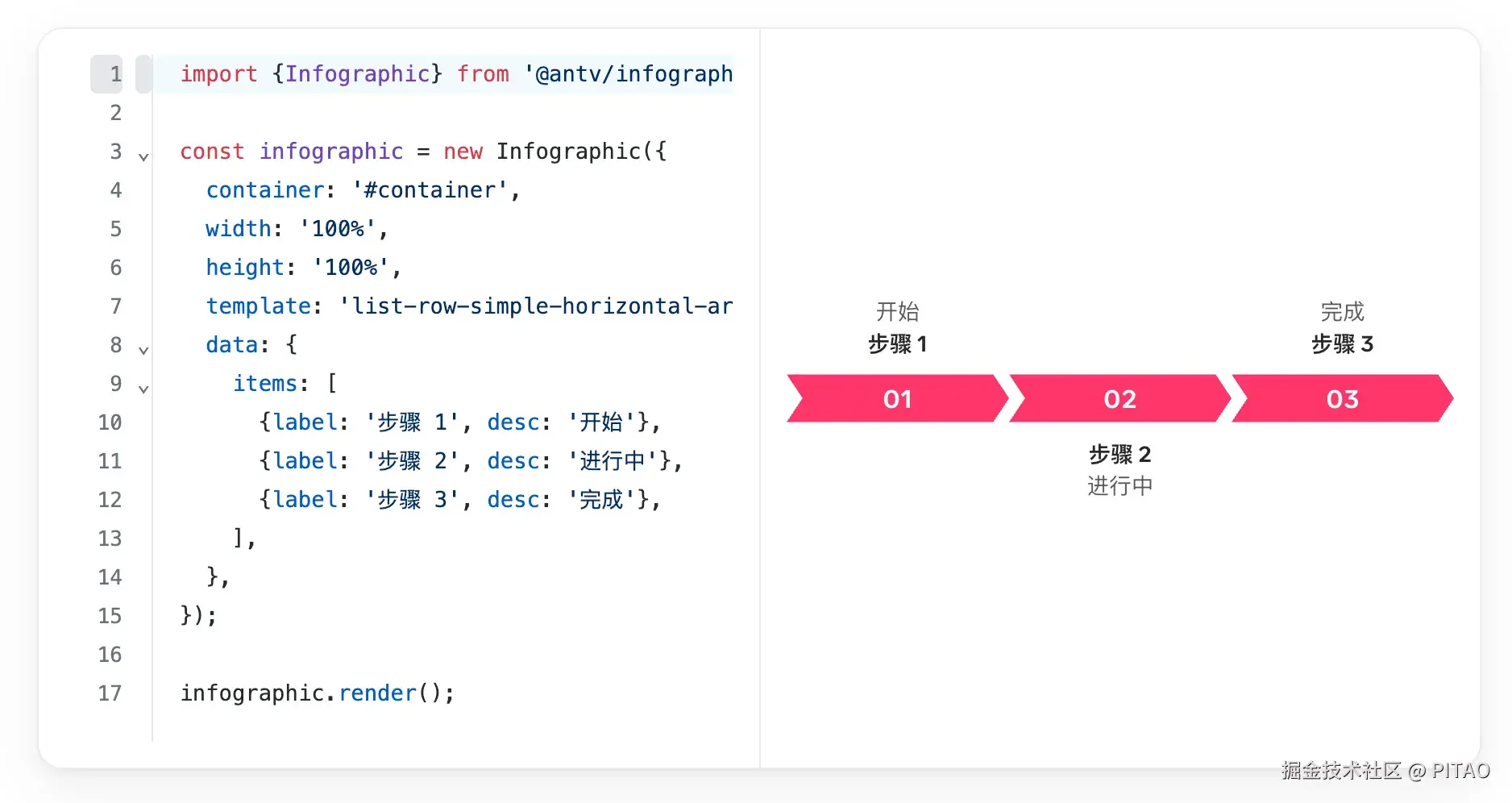 通过统一的语法与组件体系,你可以将结构化数据以优雅、灵活的方式渲染为高质量的信息图,让信息表达更高效,让数据叙事更简单。