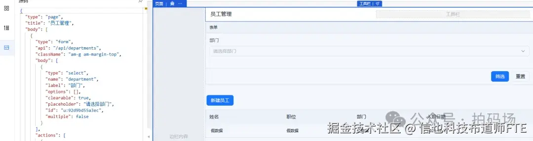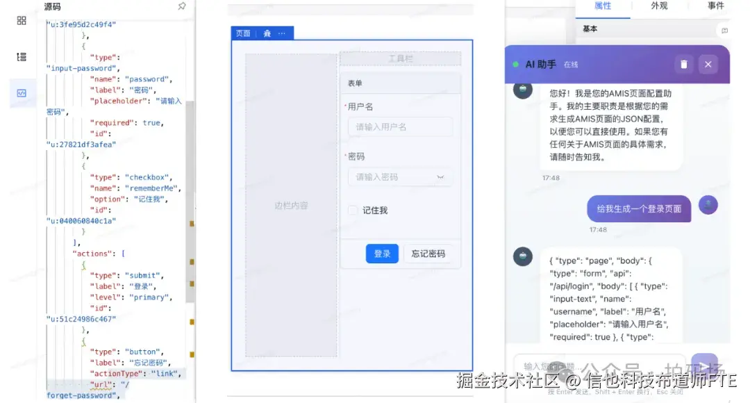 AMIS是百度开源的一款基于JSON配置的前端低代码框架,它通过声明式的配置方式让开发者能够快速构建各种后台管理系统界面,其核心优势在于其丰富的组件库和高度可定制性。在可视化操作方面,AMIS提供了配置面板,允许开发者通过可视化方式编辑组件属性,同时支持代码模式直接编辑AMIS配置代码。