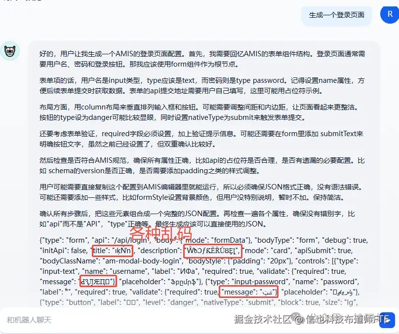 AMIS依赖于严格的JSON配置结构,任何格式错误或字段不匹配都会导致渲染失败。智能体生成的JSON 配置需要经过验证,确保符合AMIS的规范要求。验证过程包括语法检查、结构验证和语义分析,确保生成的配置不仅格式正确,而且逻辑合理。