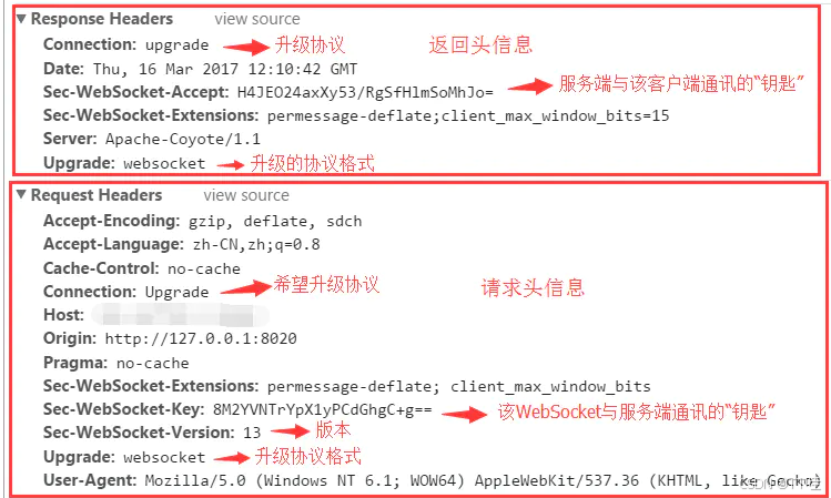 这两个header其实就是在告知服务器,我们要进行协议升级.