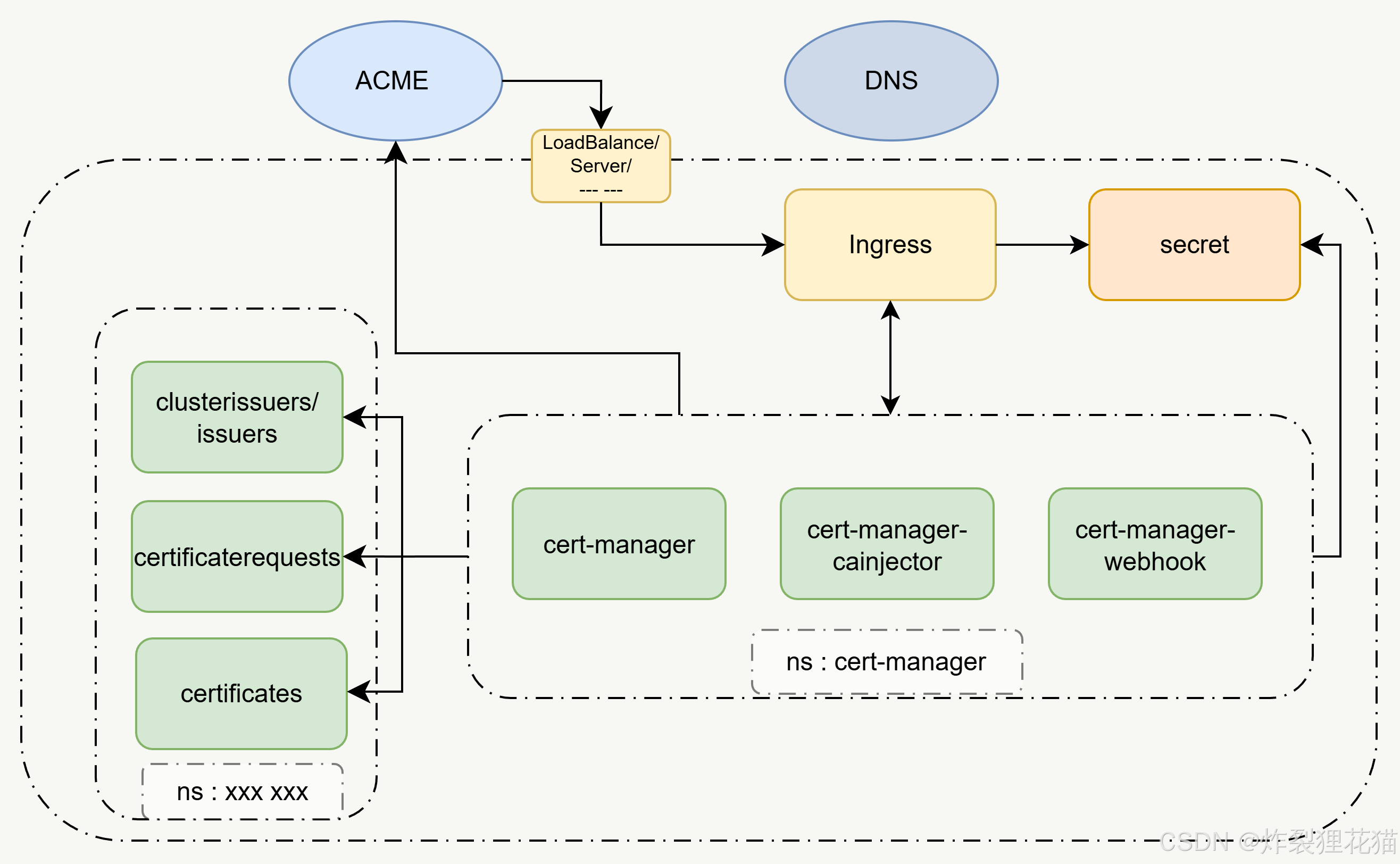 | 监控 Issuer/ClusterIssuer | 当你创建Issuer/ClusterIssuer时,它负责创建对应的ACME客户端 |