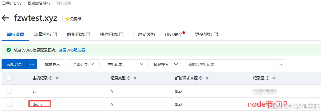 drone-ingress nginx drone.fzwtest.xyz 10.110.30.86 80, 443 145s