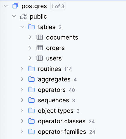 | tables 3 → documents / orders / users | 你自己建的业务表,以后所有数据都在这里面 | 重点关注! | 这才是你真正要用的 |