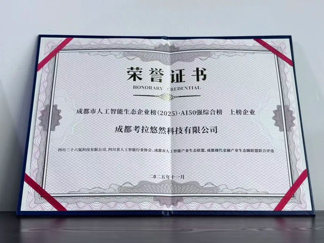 成功跻身 "成都市人工智能生态企业榜(2025)・AI50 强综合榜",背后是考拉悠然长期自主研发构筑的技术壁垒,及与上下游企业合作打造的 AI 产业生态圈,这份荣誉是对其技术与生态能力的有力印证。