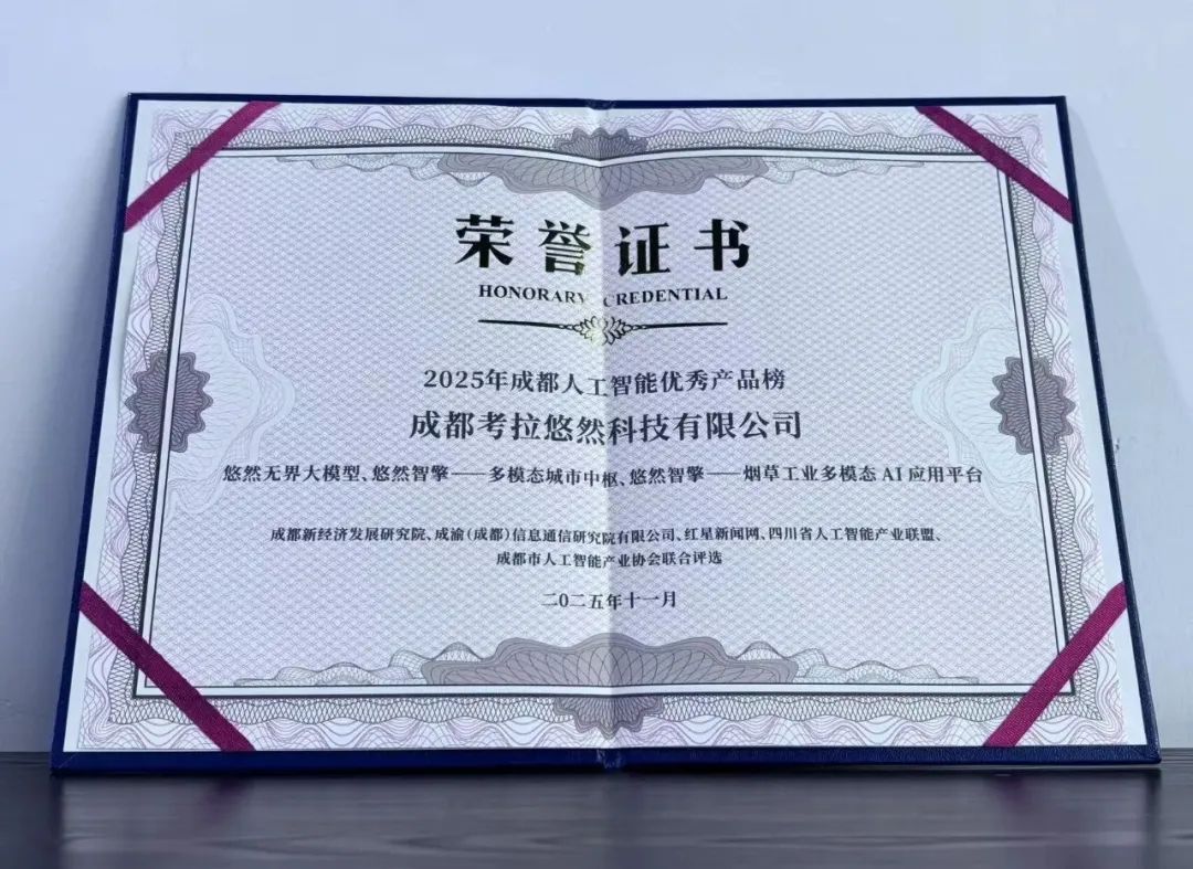 此外,考拉悠然核心打造的悠然无界大模型及其 AI 行业应用产品成功入选"2025年成都人工智能优秀产品榜",更是彰显了技术创新与产业落地能力,也体现出公司打通前沿技术与规模化产业价值通道的突破性转化实力。