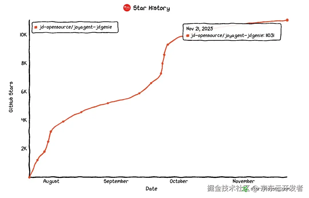 JoyAgent 是京东自主研发的智能体引擎平台。今年7月,其多智能体引擎模块 AutoBots(JDGenie)正式开源;9月,在 JDGenie 基础上进一步开源 DataAgent 能力,持续推进智能体技术在开源社区的共建与共享。当前已经Star数已经达到11k。