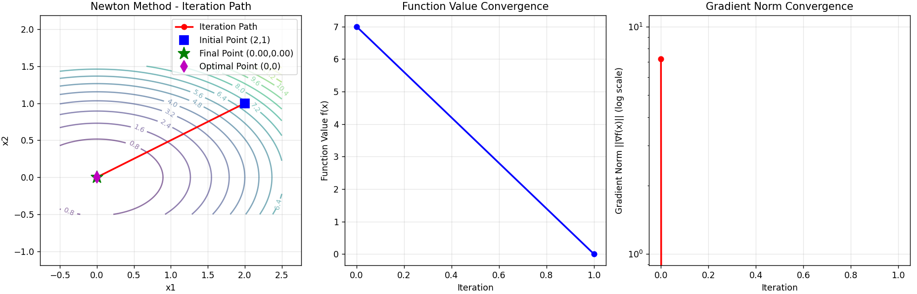 print(f"函数值误差: |f_newton - f_opt| = {error_f:.2e}")