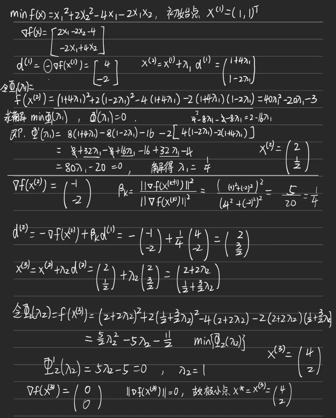 f"更新点: x_{k + 1} = x_{k} + d_{k} = ({x[0]:.4f}, {x[1]:.4f}) + ({d[0]:.4f}, {d[1]:.4f}) = ({x_new[0]:.4f}, {x_new[1]:.4f})")