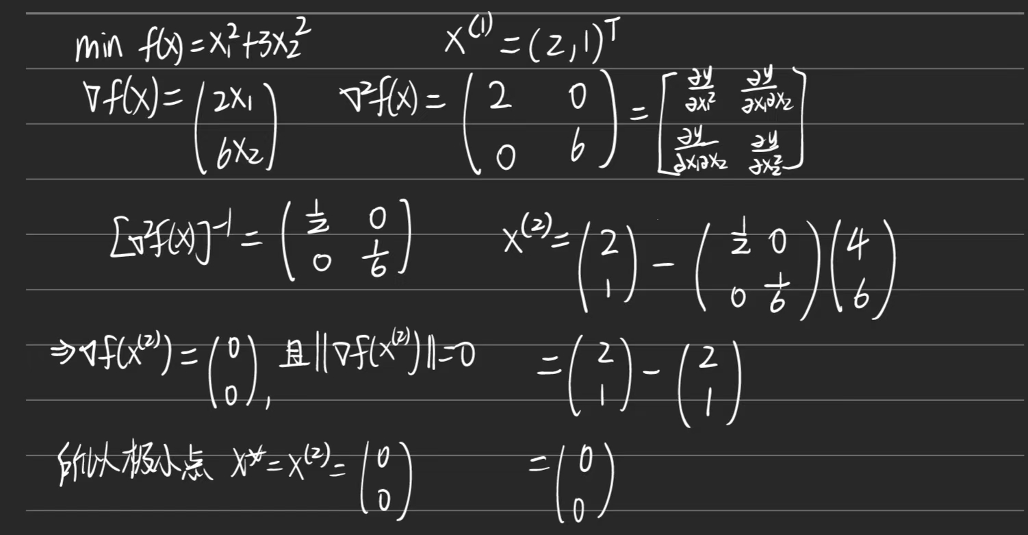 # 其中 H 是 Hessian 矩阵 [[2, 0], [0, 6]]