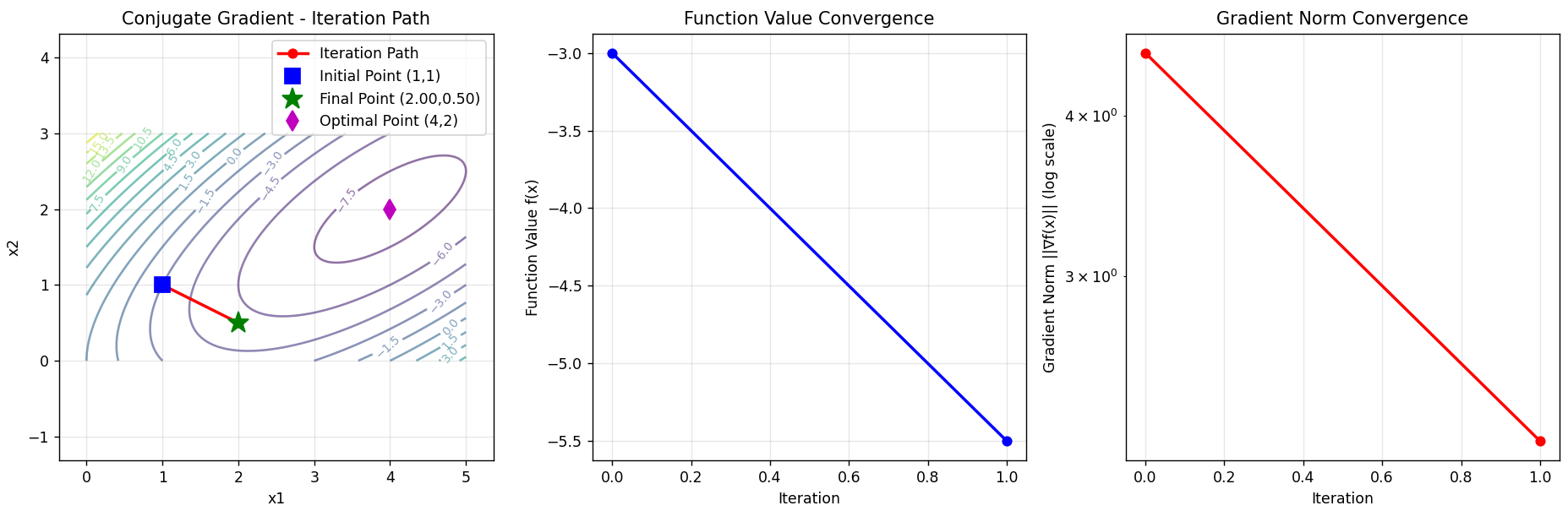 print(f"函数值误差: |f_cg - f_opt| = {error_f:.2e}")