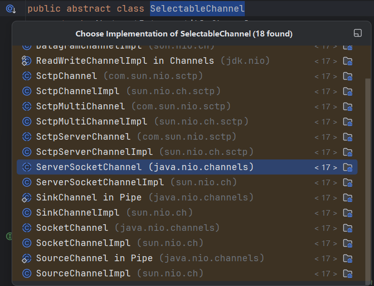 只有继承了SelectableChannel这个类的Channel才能被注册。我们常用的SocketChannel和 ServerSocketChannel都是。