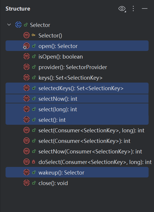 selector.select()方法会阻塞当前线程,直到以下情况之一发生: