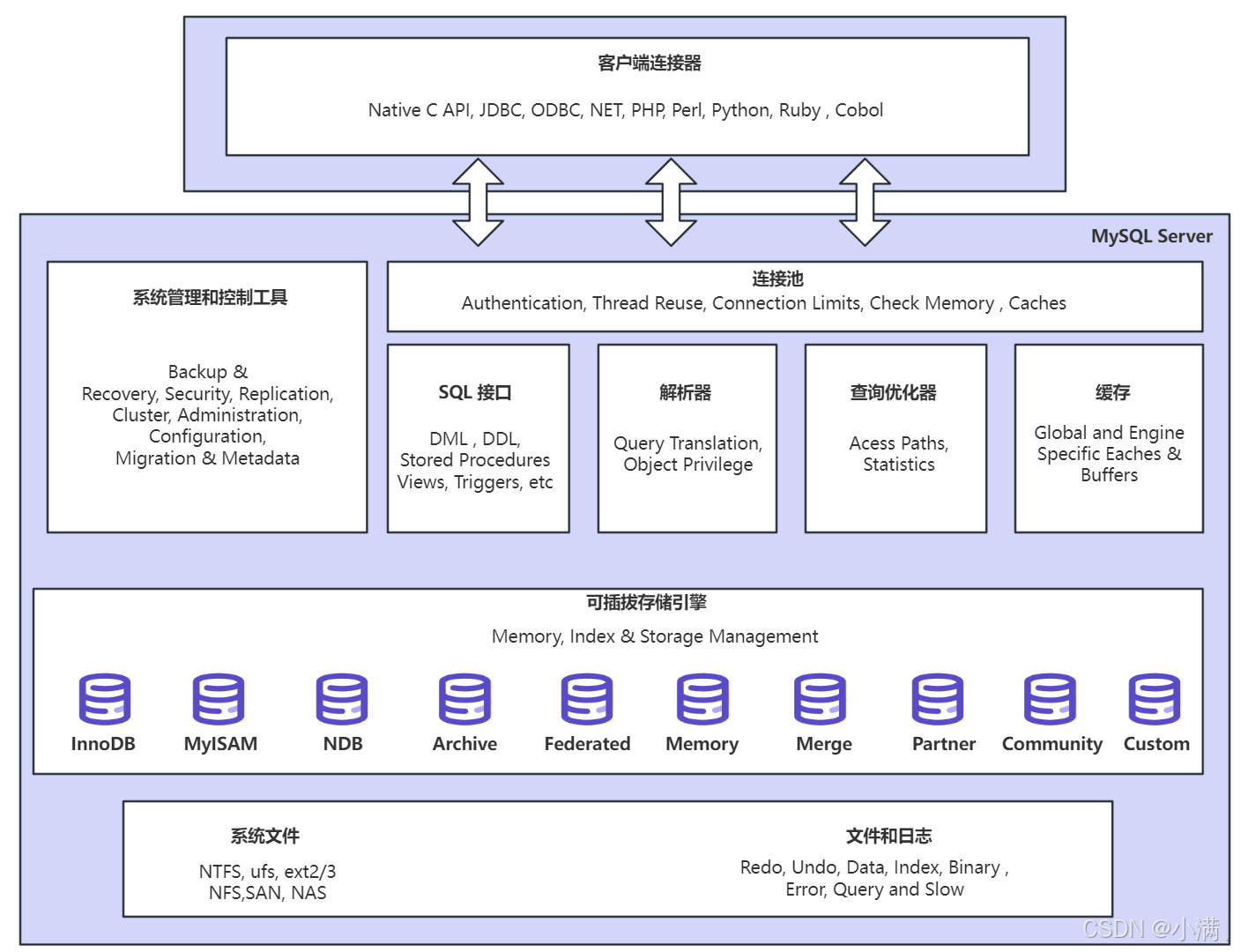 | 事务管理(Transaction Manager) | 管理事务提交(COMMIT)与回滚(ROLLBACK),保证 ACID 特性 |