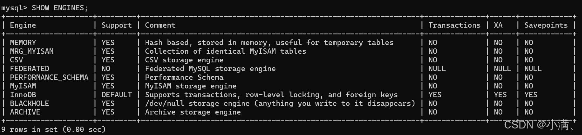查看 MySQL 支持的存储引擎: