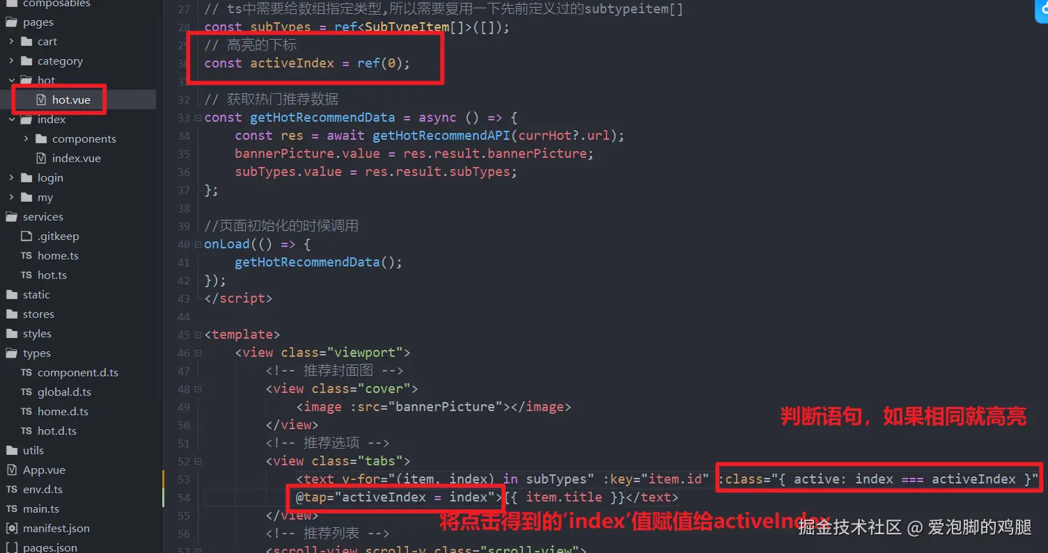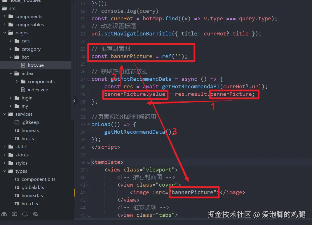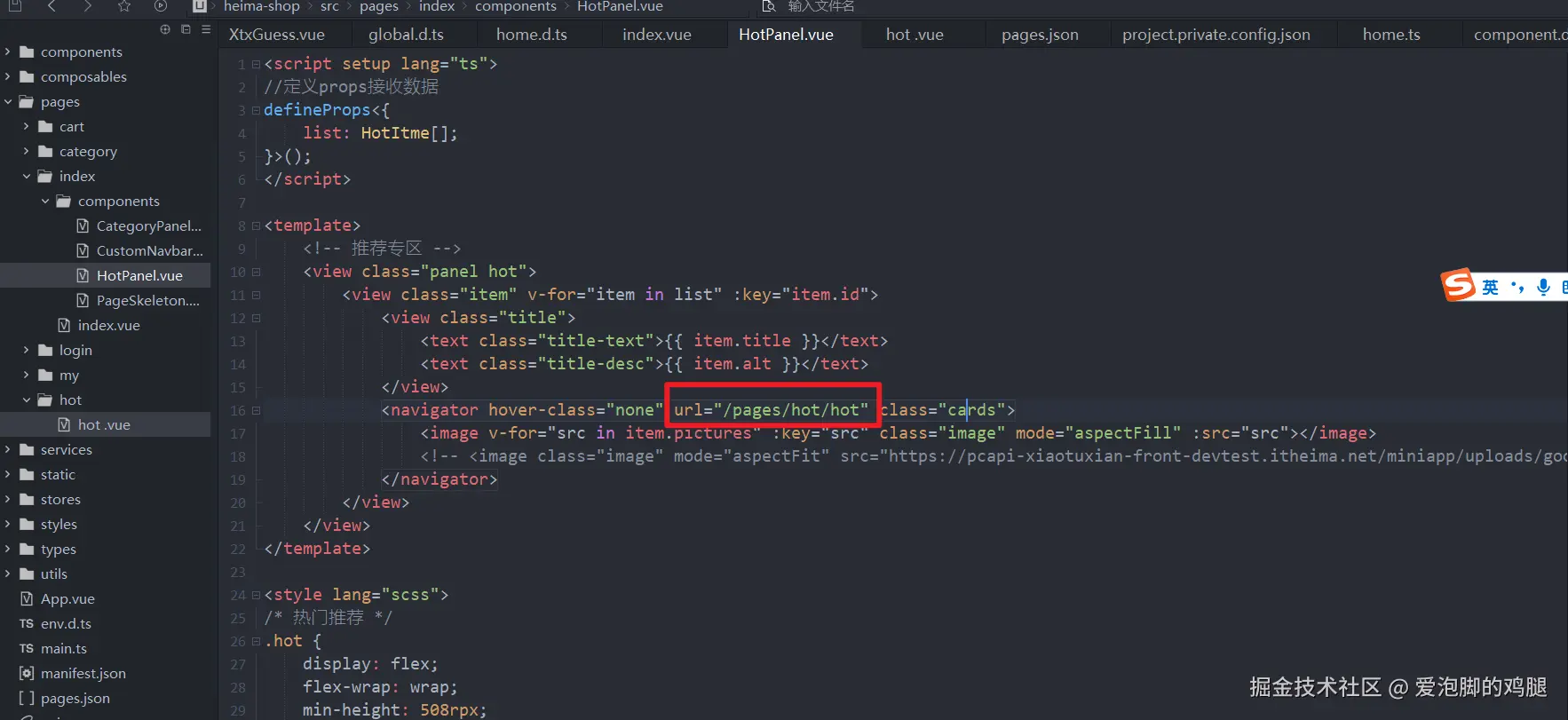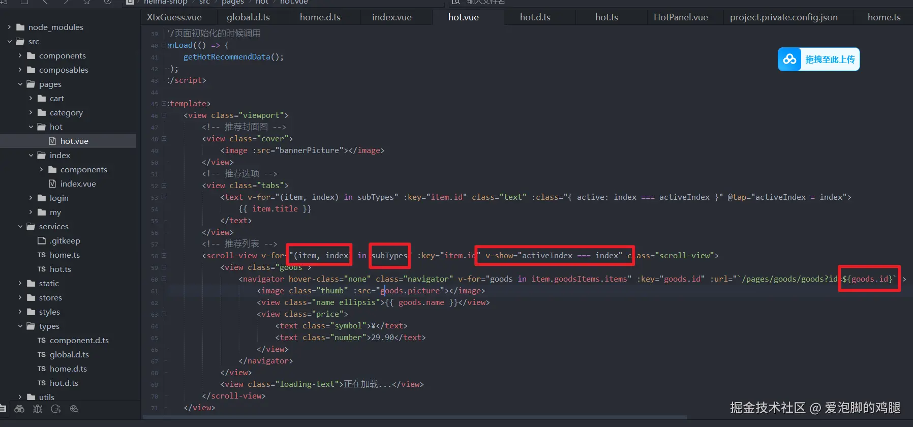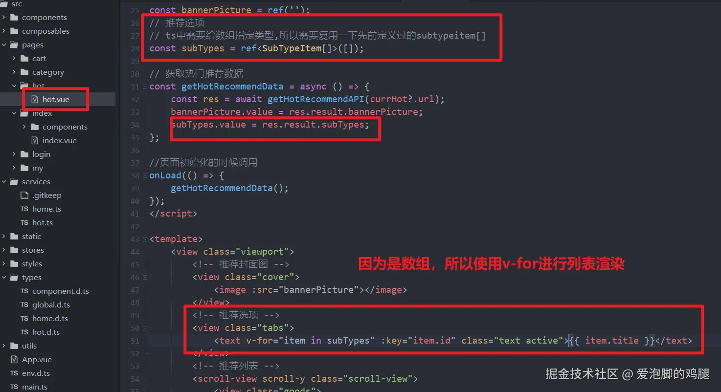 内容不同,但结构相同,所以要复用热门推荐组件,再动态传值渲染