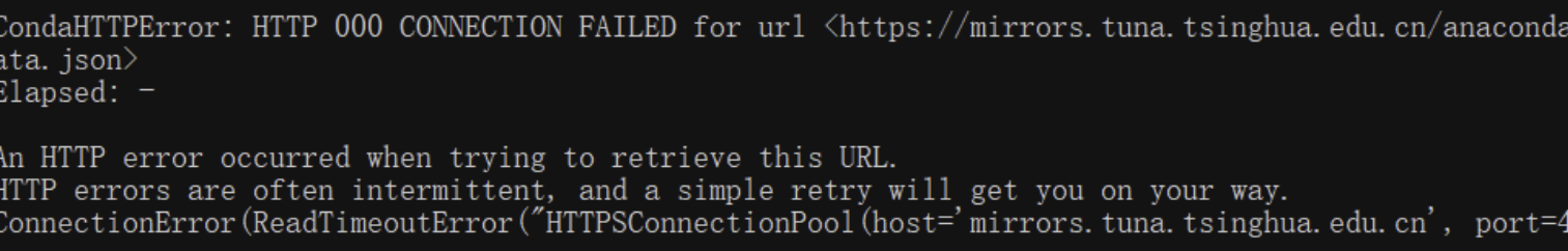 当执行 conda create(创建环境)、conda install(安装包)等命令时,弹出 CondaHTTPError: HTTP 000 CONNECTION FAILED for url,本质是: