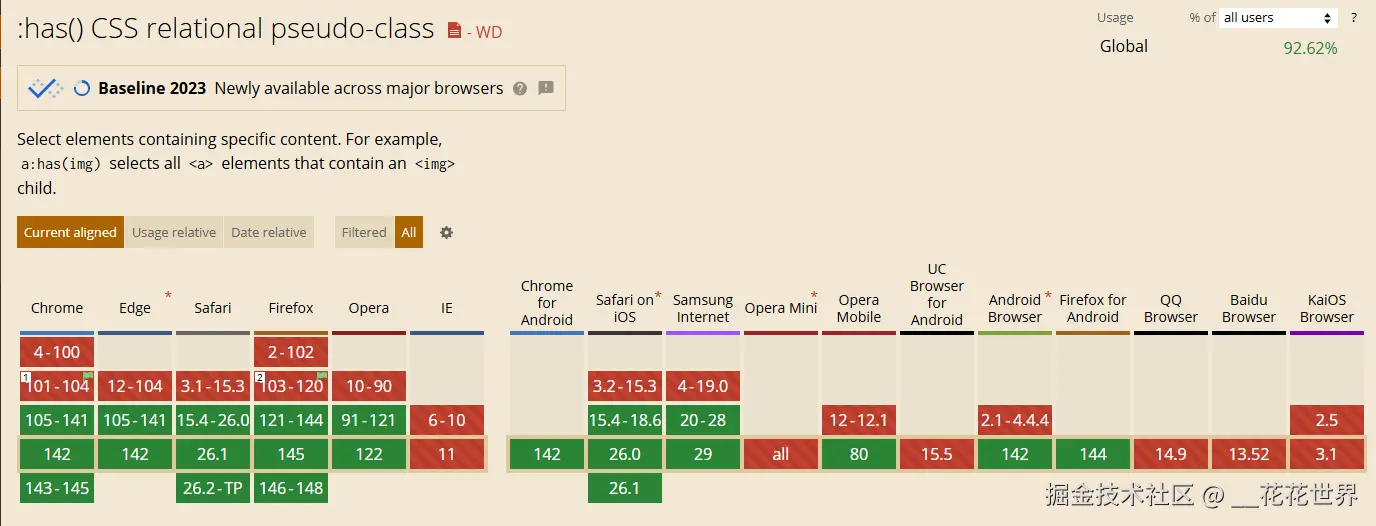 :has()选择器: 根据一个元素是否包含某些特定的后代元素,或者其后的同级元素是否满足某些条件,来选中该元素本身。这实现了"向下"观察的能力。