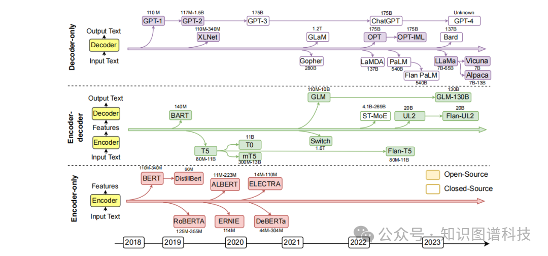 在大规模语料库上预训练的大语言模型在各种NLP任务中展现出巨大潜力。如图3所示,大多数LLMs源自Transformer设计,包含编码器和解码器组件。