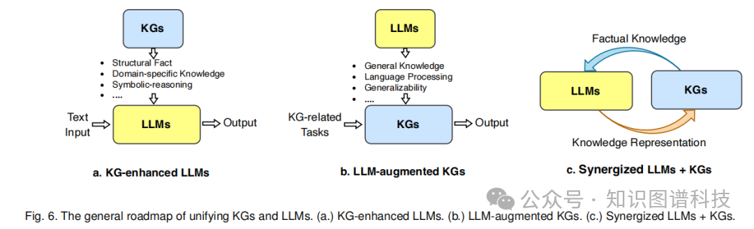 近年来,LLMs和KGs的协同作用引起了研究者的广泛关注。作为两种本质上互补的技术,它们应当被统一到一个通用框架中,相互增强。