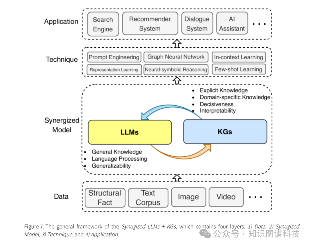LLMs和KGs相互协同以提升各自能力。这一层实现了两种技术的深度融合,使它们能够互补短板、强化优势。