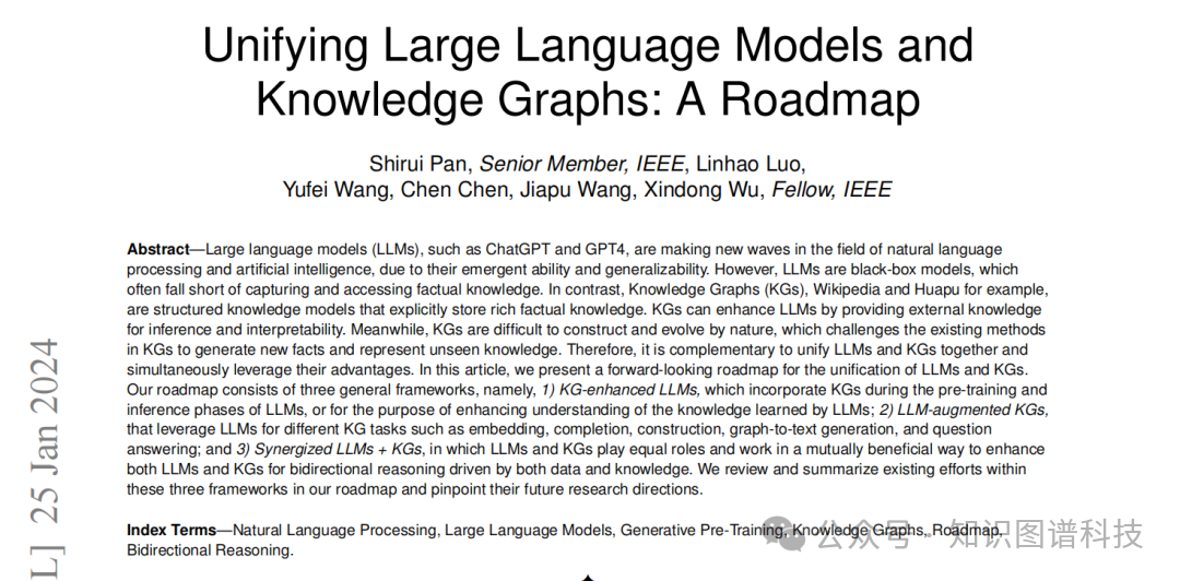 本文涵盖了LLMs和KGs的先进技术,包括ChatGPT、GPT-4等最先进的LLMs,以及多模态知识图谱等新型KGs的讨论。