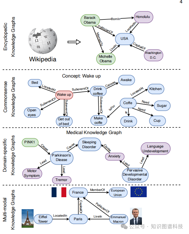与仅包含文本信息的传统知识图谱不同,多模态知识图谱以图像、声音、视频等多种模态表示事实。例如,IMGpedia、MMKG和Richpedia将文本和图像信息整合到知识图谱中。这些知识图谱可用于图像-文本匹配、视觉问答和推荐等多模态任务。