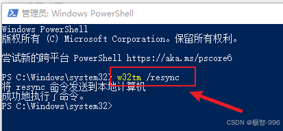 在命令提示符里,输入**"w32tm /resync"** ,然后按下回车键。稍等一两秒,系统就会提示时间同步成功,是不是超高效?