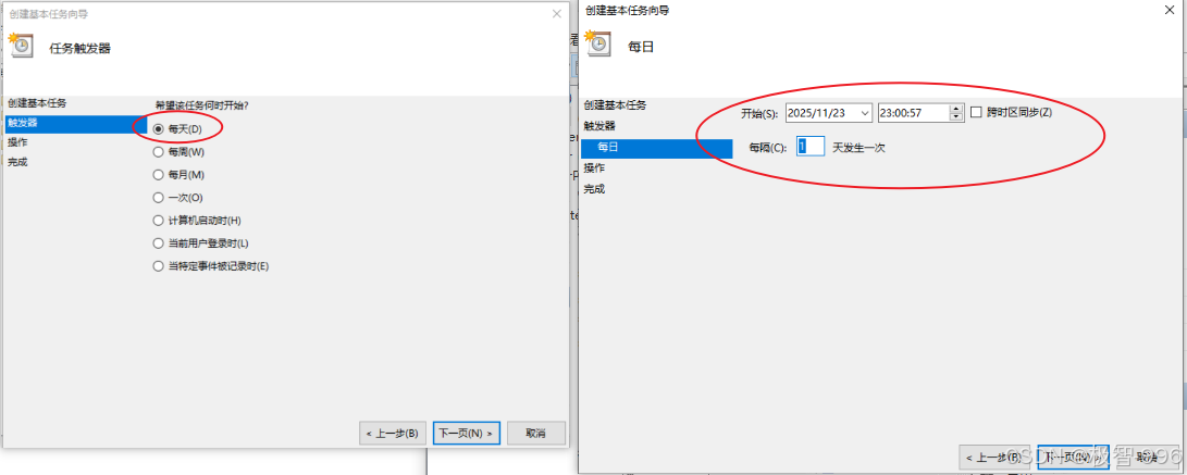 你想让电脑多久同步一次呢?可以选每天、每周,或者每月,根据自己的需求来就行,选好后点击 "下一步"。