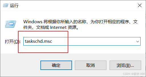 按下 Windows+R 键,输入 "taskschd.msc",按回车键,任务计划程序就启动了。