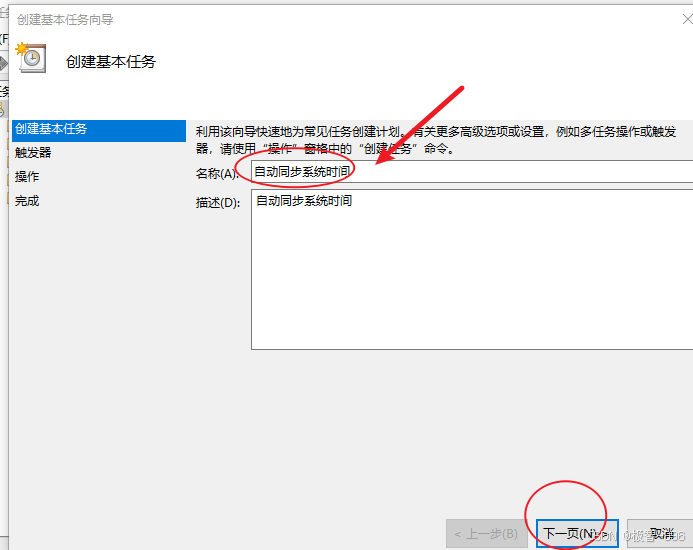在窗口的右侧,找到**"创建基本任务..."** 这个选项,点击它。先给任务起个名字,比如 "自动同步系统时间",再写一句简单描述,然后点击 "下一步"。