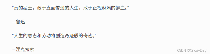 引用段落通常用于引用他人的话或想要强调的内容,在最终渲染的文档中会有不同的视觉效果,比如可能会有缩进或不同的背景色。