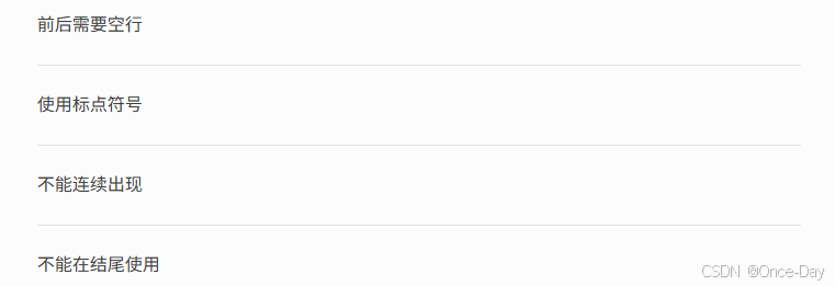 - 可以混用不同的标识符,但建议同级使用相同符号,推荐层级顺序为