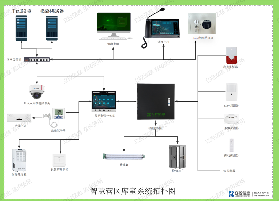 - 环境类:温湿度传感器实时捕捉库内温湿度,联动防爆除湿机、防爆空调主动调节环境;