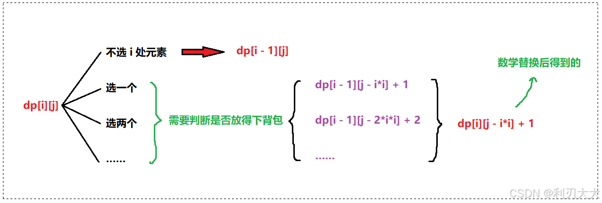 dp[i][j] = min(dp[i][j], dp[i][j - i*i] + 1);