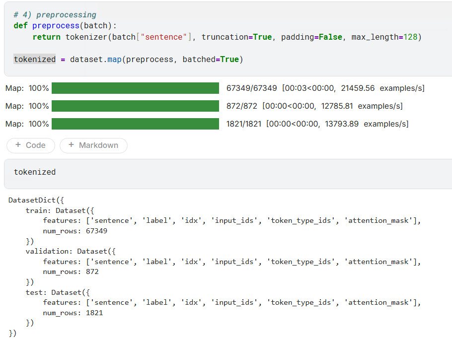 return tokenizer(batch["sentence"], truncation=True, padding=False, max_length=128)