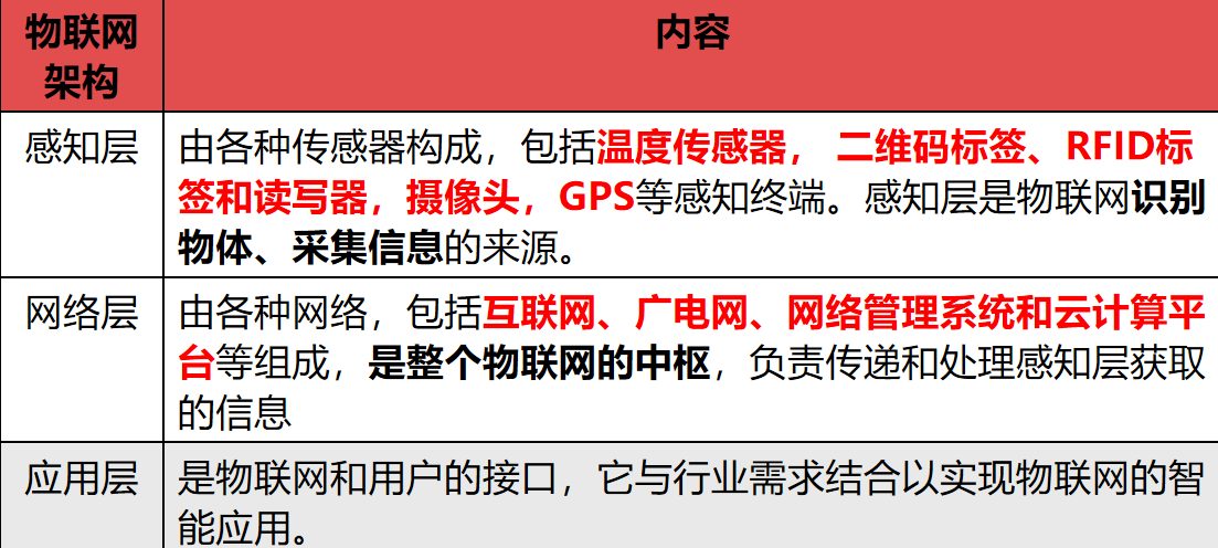 物联网架构可分为三层:感知层、网络层、应用层。