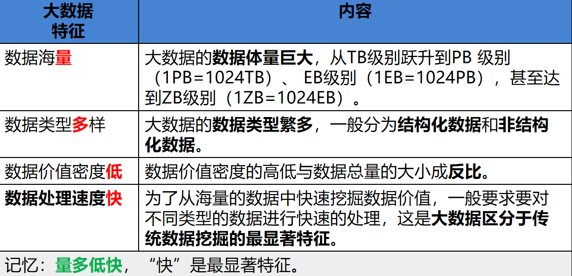 大数据(Big Data)指无法在一定时间范围内用常规软件工具进行捕捉、管理和处理的数据集合,是具有更强的决策力、洞察发现力和流程优化能力的海量、高增长率和多样化的信息资产。