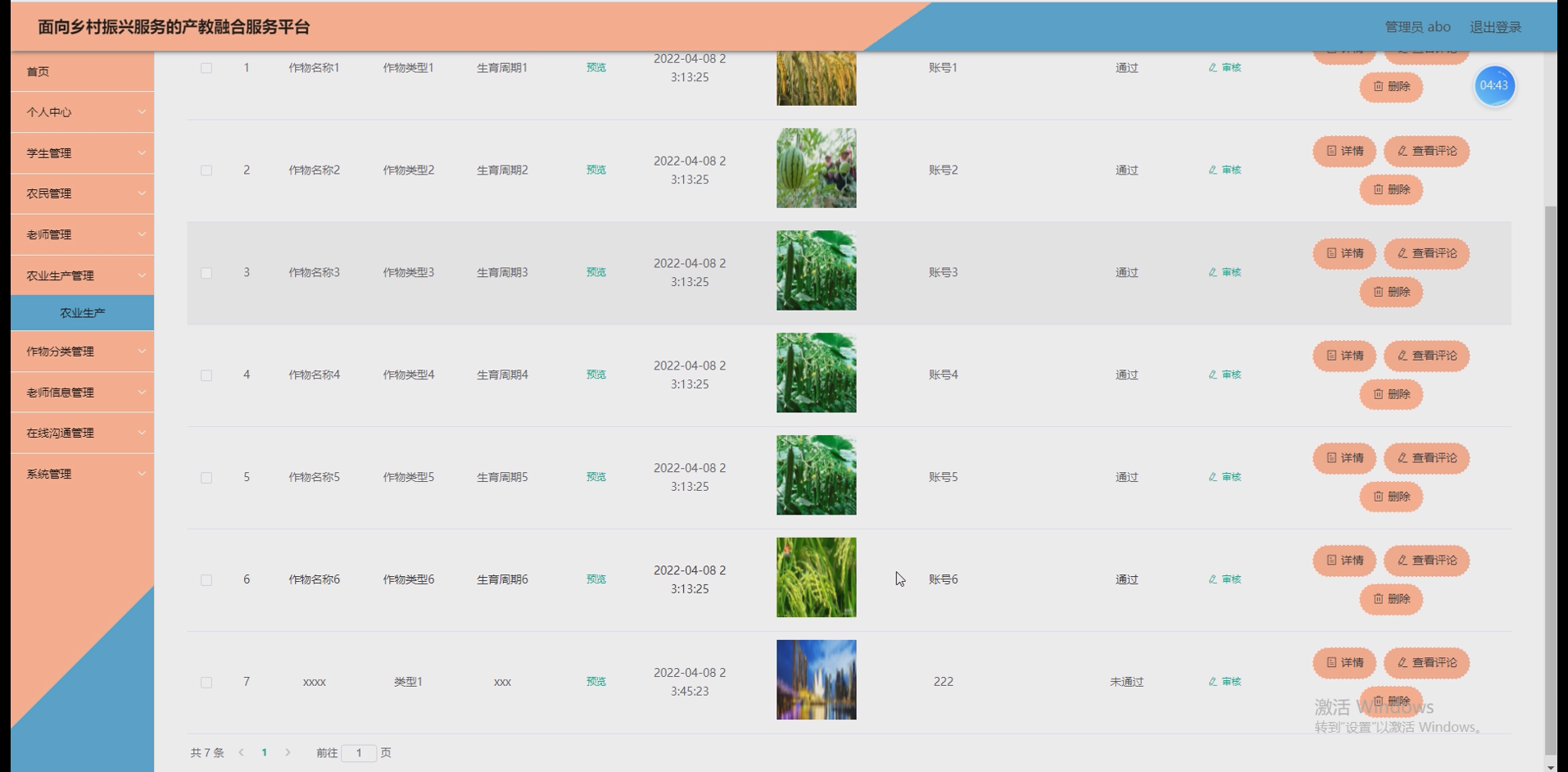 系统项目功能:学生,农民,老师,农业生产,作物分类,老师信息,学生沟通,农民沟通