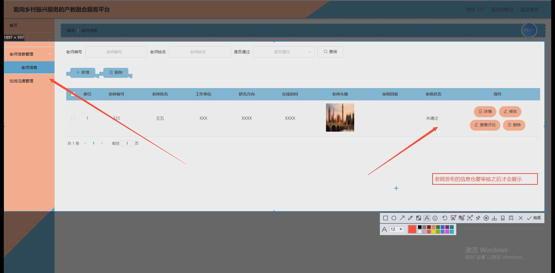 - 沟通互动模块:实现学生与农民、学生与教师、农民与教师之间的实时聊天、问题咨询、留言回复等功能;